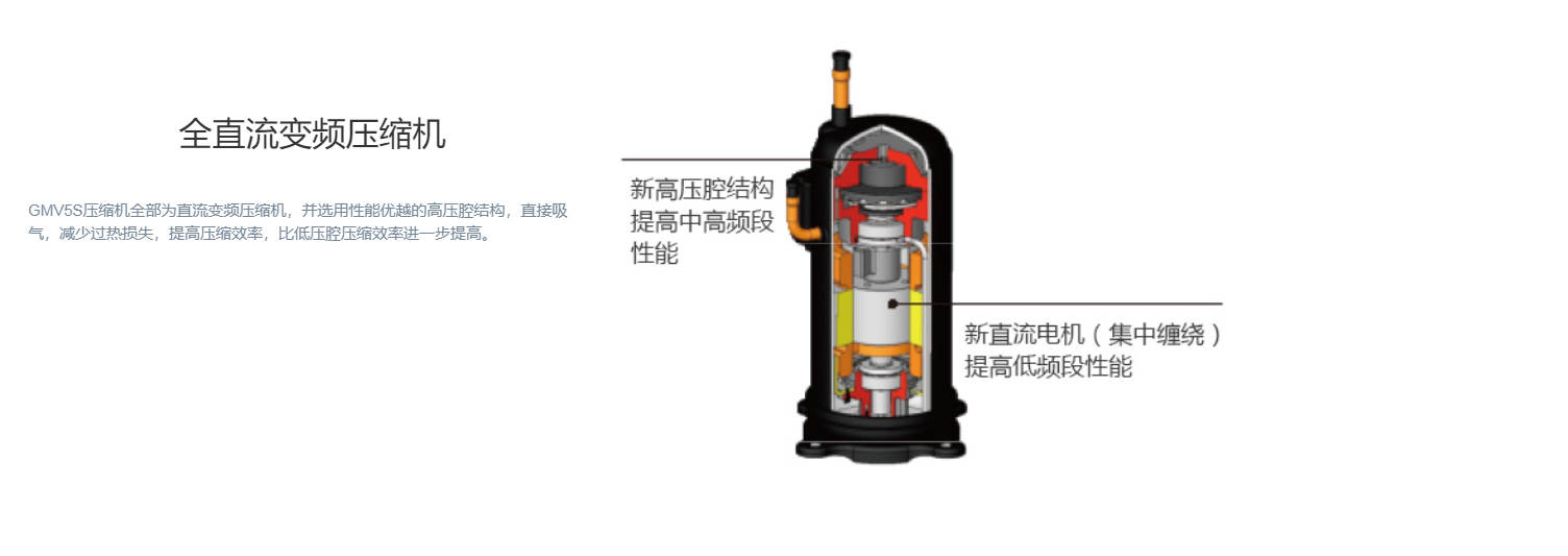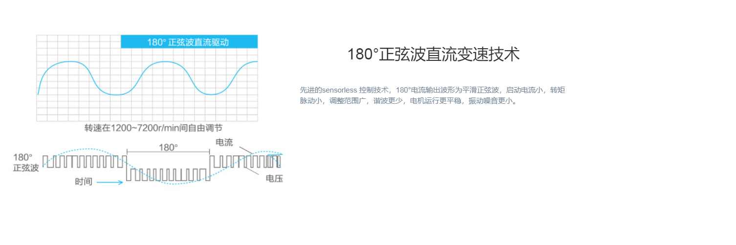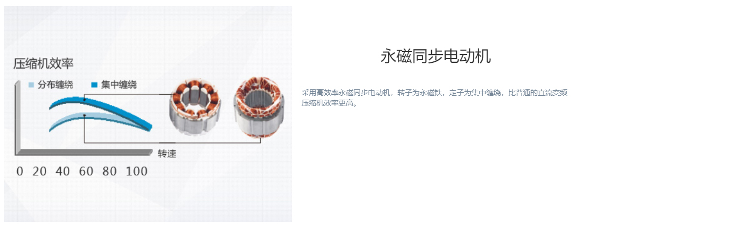 全直流變頻技術、永磁同步電機、直流變頻壓縮機、過冷度控制技術、180°正弦波直流變頻技術、雙節能運行模式、制熱不換向回油